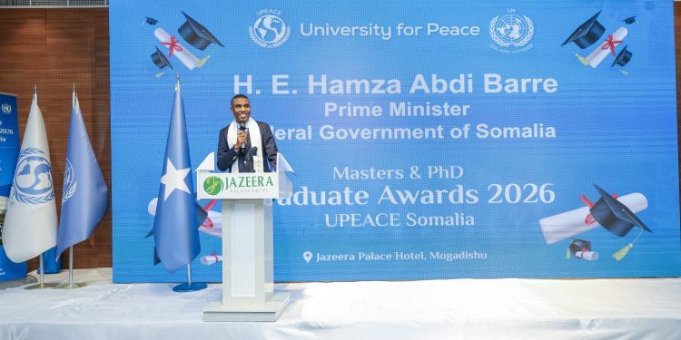 Muqdisho, Jannaayo 24, 2026: — Ra’iisul Wasaaraha Xukuumadda Federaalka Soomaaliya, Mudane Xamsa Cabdi Barre, ayaa maanta ka qayb-galay munaasabadda qalin-jabinta aqoonyahanno dhammaystay waxbarashada heerarka sare ee Master iyo PhD, ee Jaamacadda University for Peace (UPEACE). Ra’iisul Wasaaraha oo ugu hambalyeeyey aqoonyahanka qalin-jabiyay dadaalkii dheeraa ee ay u soo galeen, si ay u gaaraan heerkan sare ee aqooneed, ayaa xusay in culuumta ay barteen ay tahay mid muhiim u ah dhismaha dowladnimada, nabadda, iyo horumar waara oo dalkeenna uu gaaro. “Maanta waa maalin weyn oo muujinaysa horumarka tacliinta sare ee dalka, in aan aragno arday Soomaaliyeed ah oo dalkooda gudihiisa ku qaadanaya shahaadooyinka sare ee PhD iyo Master, waa guul u soo hoyatay Qaranka. Aqoonyahannada maanta qalin-jabiyey waa kuwii hoggaamin lahaa isbeddelka iyo hal-abuurka aan uga baahannahay dalkeenna in uu gaaro.” Ayuu yiri Ra’iisul Wasaare Xamsa. Mudane Xamsa Cabdi Barre, ayaa ku bogaadiyey hoggaanka Jaamacadda University for Peace (UPEACE) doorka ay ka qaadanayaan kor u qaadista tayada waxbarashada sare ee Soomaaliya, isaga oo xusay in Xukuumadda DanQaran ay mudnaan gaar ah siinayso horumarinta aqoonta, si looga gudbo caqabadaha hortaagan xasilloonida iyo horumarka bulshada. “Xukuumad ahaan waxbarashada waxaan u aragna horumarka nolosha, sidaas darteed Qorshaha Isbeddelka Qaranka (NTP2025 – 2029) waxaa tiir dhexaad u ah horumarinta karaanka aadanaha, waxaan aaminsanahay in bulshada wax la baro, Jaamacadaha dalka waxa ay qeyb weyn ka yihiin horumarka dalka”. Ra’iisul Wasaaraha, ayaa kula dardaarmay aqoonyahannada qalinjabiyey in ay cilmigooda ugu adeegaan dadka iyo dalka, isaga oo carrabka ku adkeeyey in looga fadhiyo in ay qayb ka noqdaan qorshayaasha lagu xasilinayo dalka iyo dib-u-dhiska nidaamka dowladnimo. – DHAMMAAD –