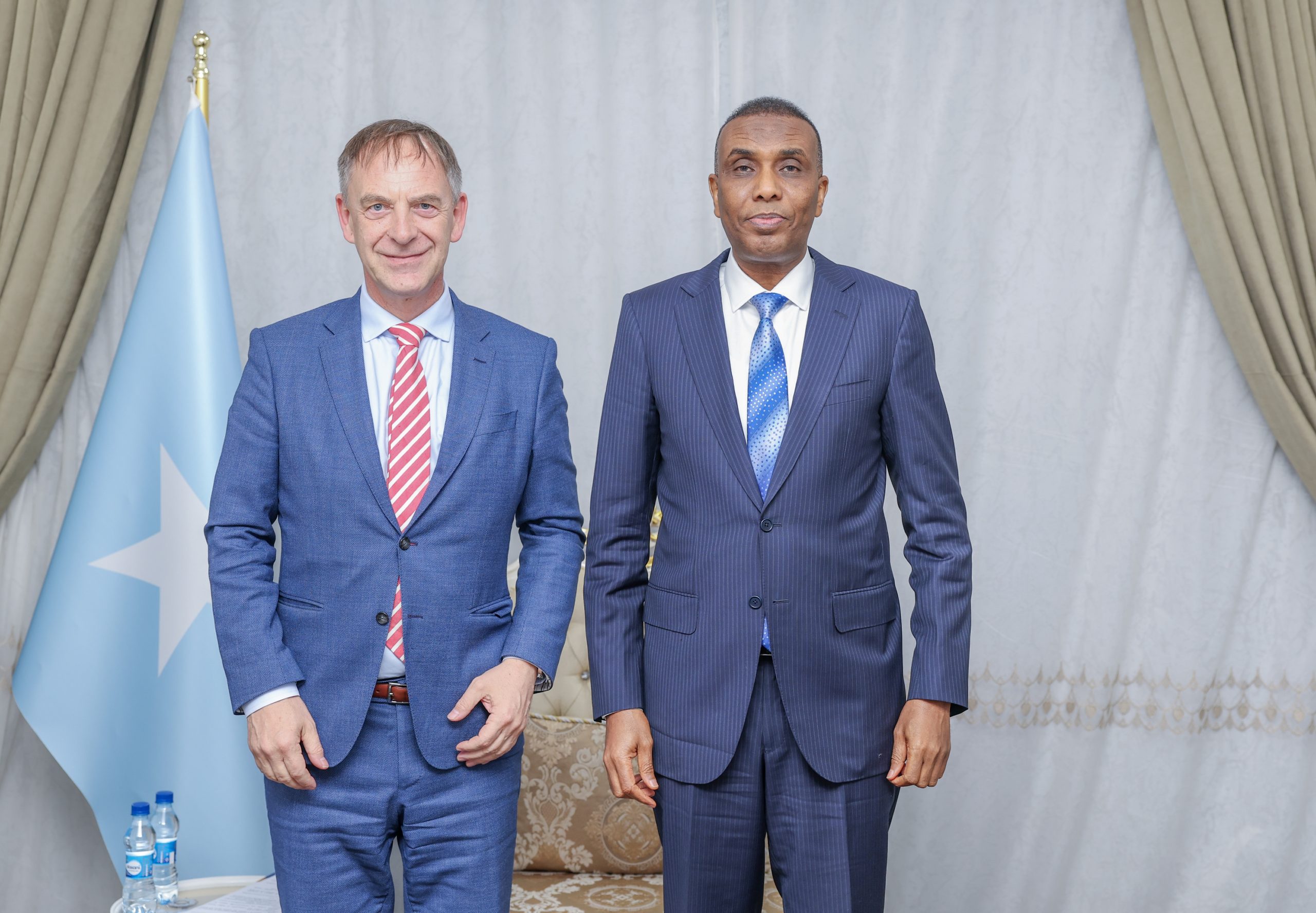 Ra’iisul Wasaaraha Xukuumadda Jamhuuriyadda Federaalka Soomaaliya, Mudane Xamsa Cabdi Barre, ayaa xafiiskiisa ku qaabilay Danjiraha Jamhuuriyadda Jarmalka u fadhiya Soomaaliya, Sebastian Groth.
