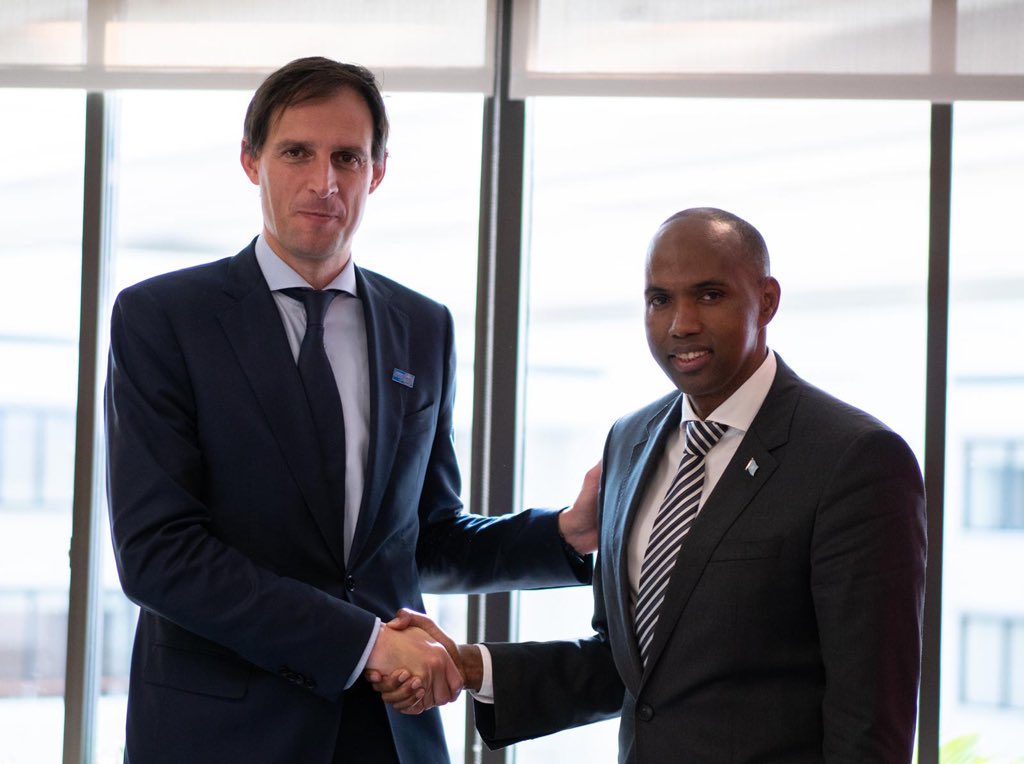 Washington, Jimce, October 18, 2019—Ra’iisul Wasaaraha xukuumadda federaalka Soomaaliya (XFS), mudane Xasan Cali Khayre ayaa magaalada Washington kula kulmay wasiirka maaliyadda Netherlands, Wopke Hoekstra oo ay ka wada hadleen xoojinta xariirka labada dowladood ee qorshaha Soomaaliya deynta looga cafinayo.