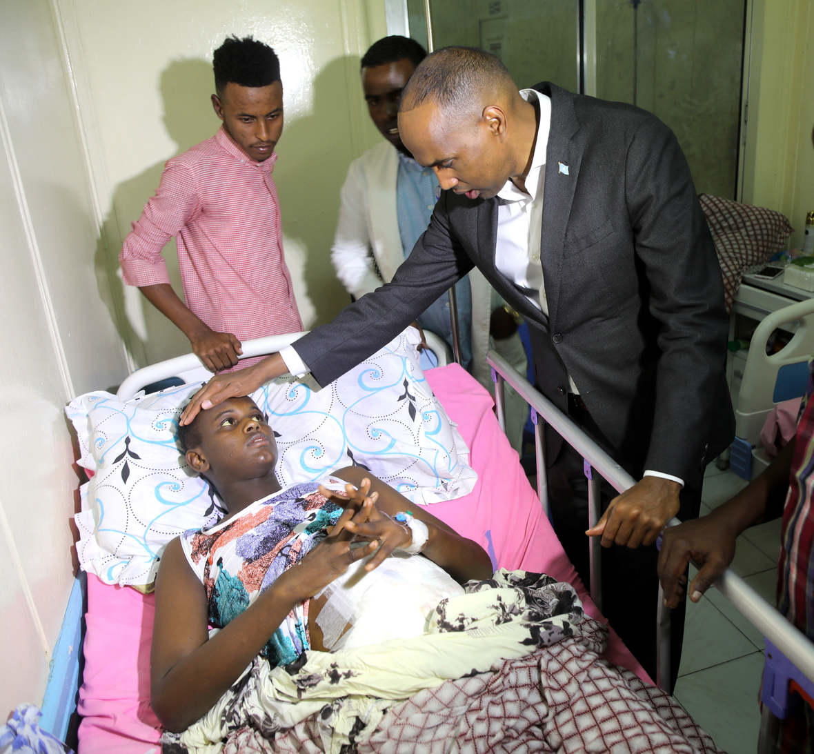 Muqdisho; Axad, Deseembar 23, 2018 —Ra’iisul wasaaraha xukumadda federaalka Soomaaliya (XFS), mudane Xasan Cali Khayre, ayaa xalay Isbitaaladda Muqdisho ku Booqday dadkii ku dhawacmay qaraxyadii argagaxiso ee shalay ka dhacay magaalada Muqdisho.
