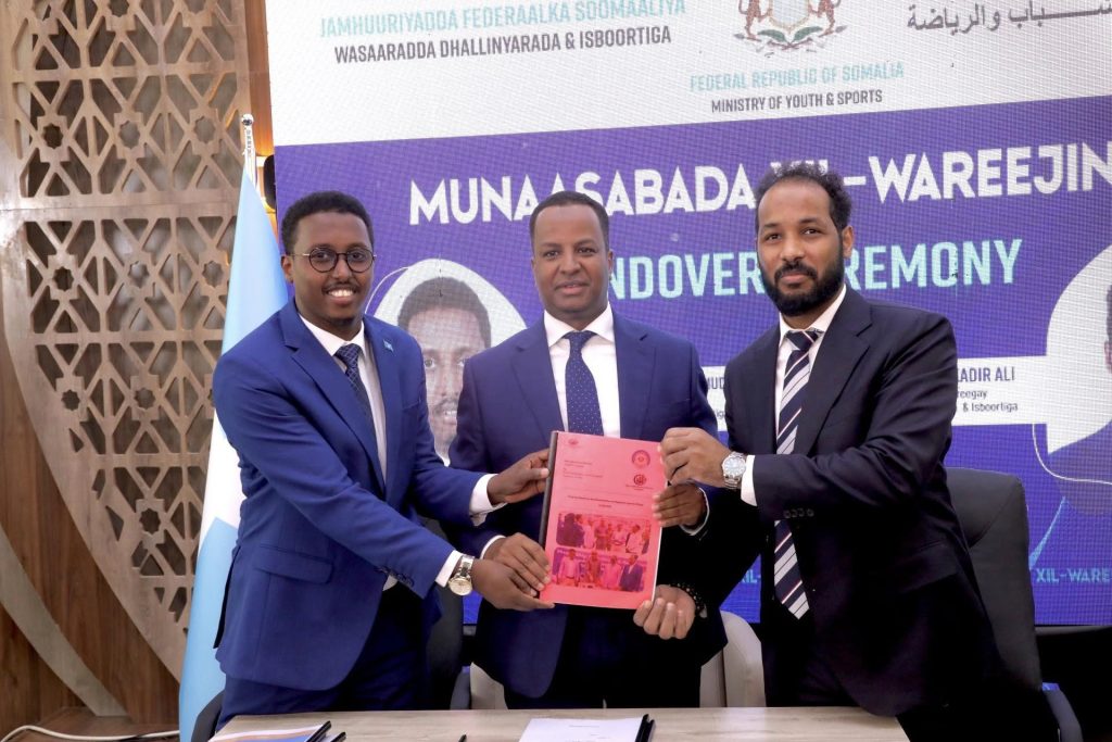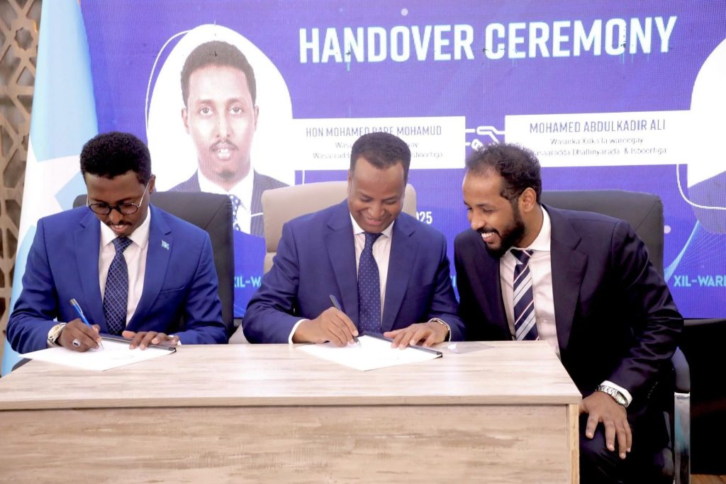 Ra’iisul Wasaare Ku-xigeenka Labaad ee Xukuumadda Federaalka Soomaaliya, Mudane Cabdisalaan Cabdi Cali, ayaa maanta xilka u kala wareejiyay Wasiirkii hore Wasaaradda Dhallinyarada iyo Ciyaaraha Mudane Maxamed Barre iyo Wasiirka cusub Mudane Maxamed Cabdulqaadir Cali.