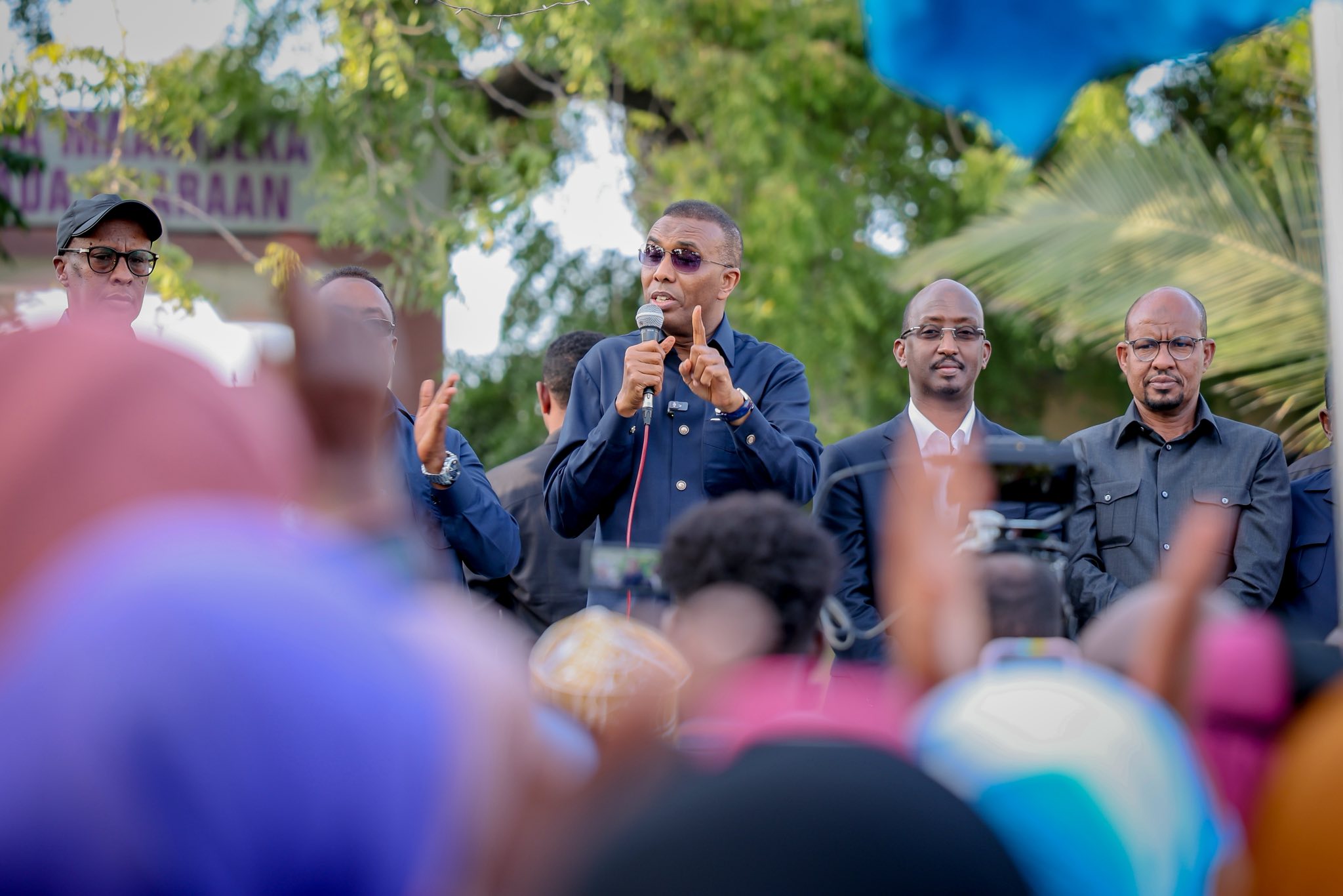 “Waxaan galabta kala qeyb-galay bulshada ku nool Degmada Kaaraan oo sameeyay isu-soo bax balaaran oo ay ku muujinayaan diyaar-garowga ay ugu jiraan doorashooyinka qof iyo codka ah ee loo madlanyahay toddobaadkan, waa maalin weyn oo taariikhi ah, oo aynu isugu nimid in aynu ku soo gaba-gabeyno olole ballaaran oo aynu ku soo jirnay muddo dheer” ayuu yiri Ra’iisul Wasaare Xamsa