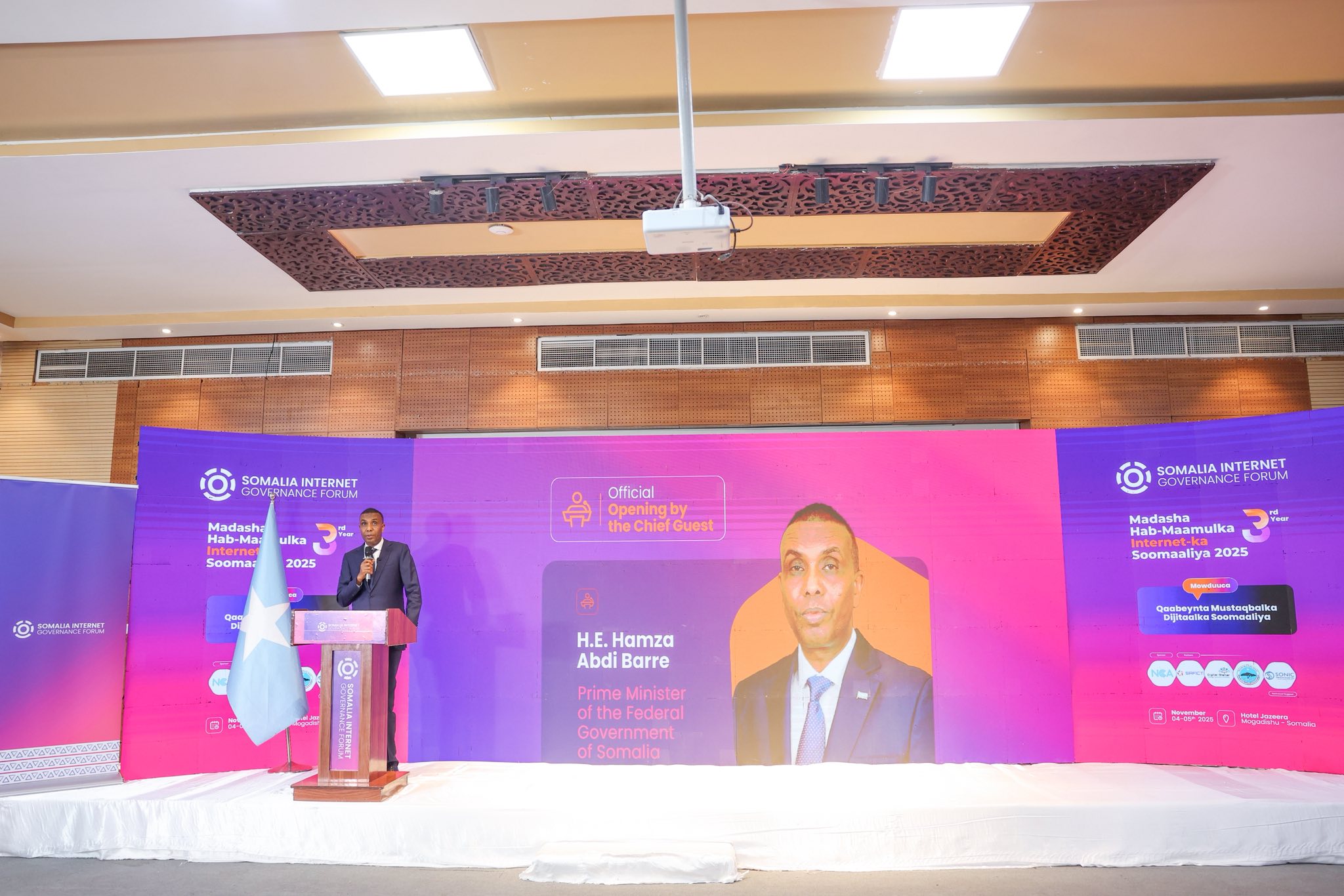 Ra’iisul Wasaaraha Xukuumadda Jamhuuriyadda Federaalka Soomaaliya Mudane Xamsa Cabdi Barre, oo furay Shirka Madasha Hab-maamulka Internet-ka (Somali Internet Governance Forum), ayaa carrabka ku adkeeyey muhiimadda uu leeyahay in shirkan ay ka soo baxaan qodobo wax ku ool ah oo lagu horumarin karo maamulka iyo nidaamka isticmaalka Internet-ka ee dalka.