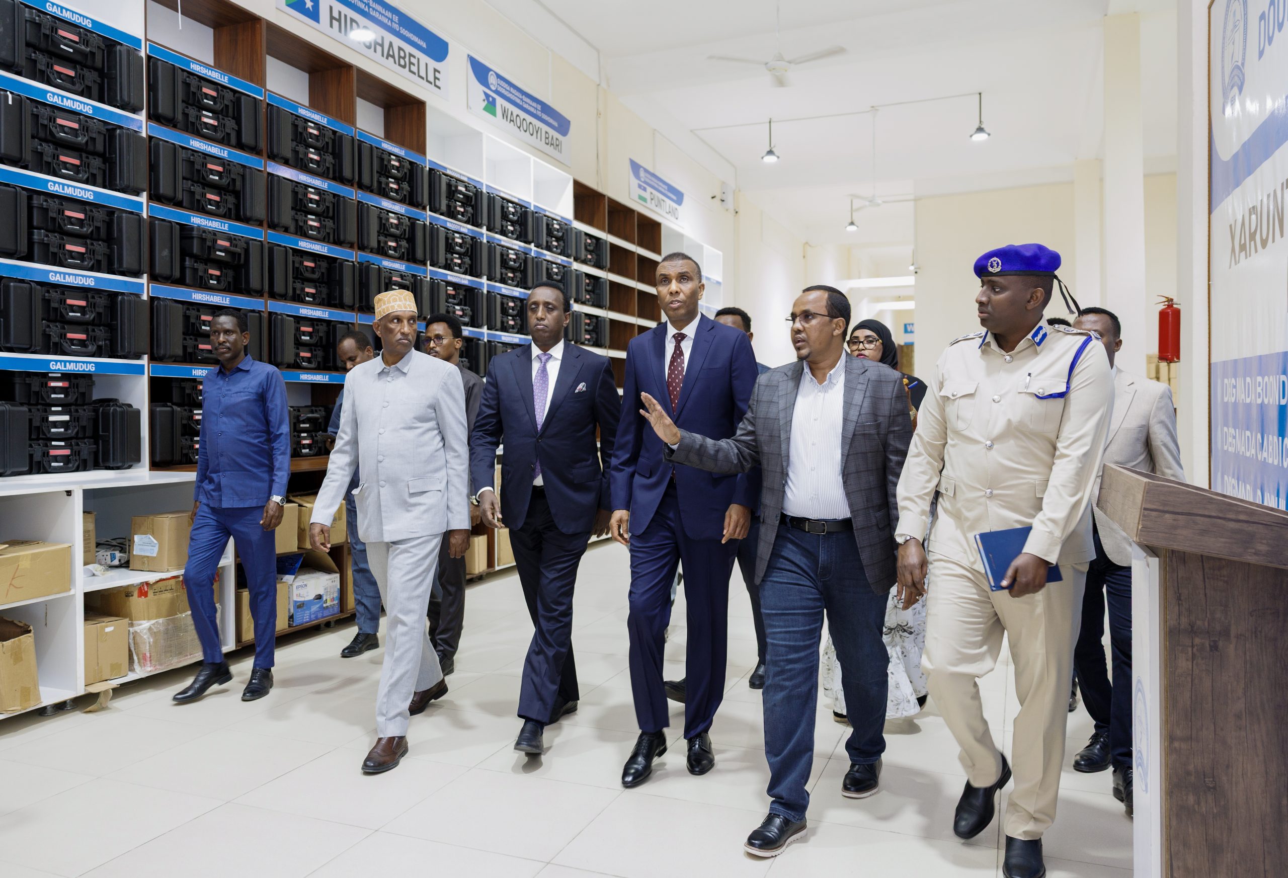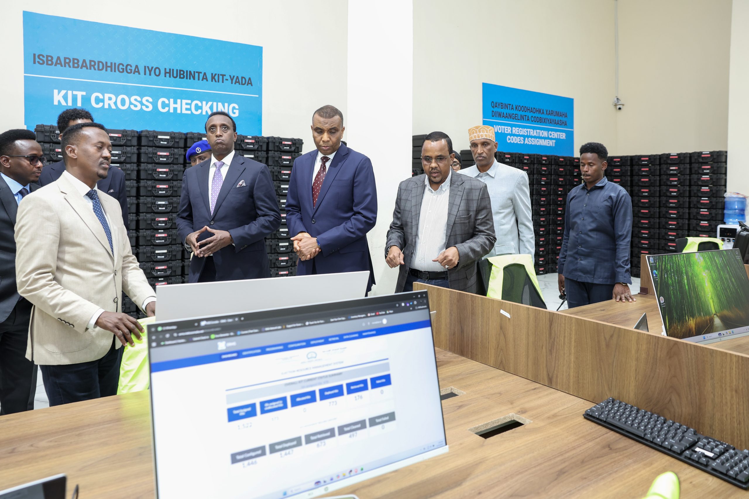 Ra’iisul Wasaaraha Xukuumadda Jamhuuriyadda Federaalka Soomaaliya, Mudane Xamsa Cabdi Barre, ayaa kormeer ku tagey xarunta Guddiga Madaxa-bannaan ee Doorashooyinka Qaranka iyo Soohdimaha (GMDQS), halkaas oo ay ka bilaabatay bixinta kaararka codbixinta doorashooyinka.