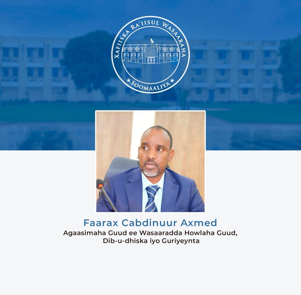 Ra’iisul Wasaaraha Xukuumadda Jamhuuriyadda Federaalka Soomaaliya Mudane Xamsa Cabdi Barre, ayaa magacaabay Agaasimeyaasha Guud ee Wasaaradaha Howlaha Guud, Dib-u-dhiska iyo Guriyeynta iyo Wasaaradda Isgaarsiinta iyo Tiknoloojiyadda Xukuumadda Federaalka Soomaaliya.