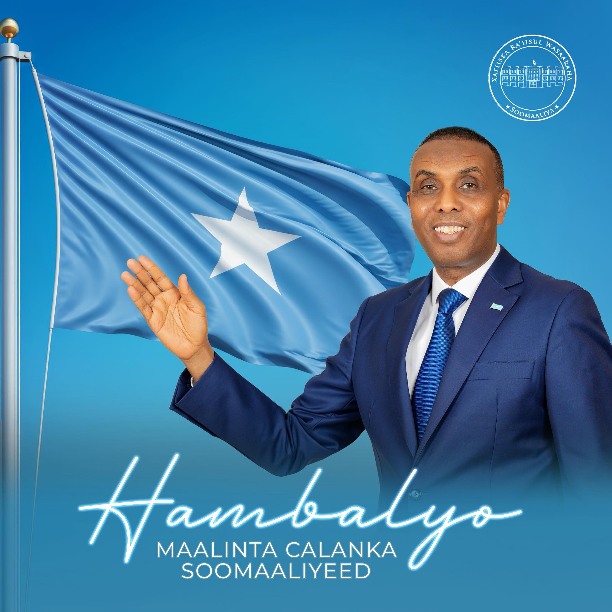Ra’iisul Wasaaraha Xukuumadda Jamhuuriyadda Federaalka Soomaaliya Mudane Xamsa Cabdi Barre, ayaa hambalyo ku aadden xuska Maalinta Calanka oo ku beegan 12-ka Oktoobar u diray guud ahaan bulshada Soomaaliyeed.