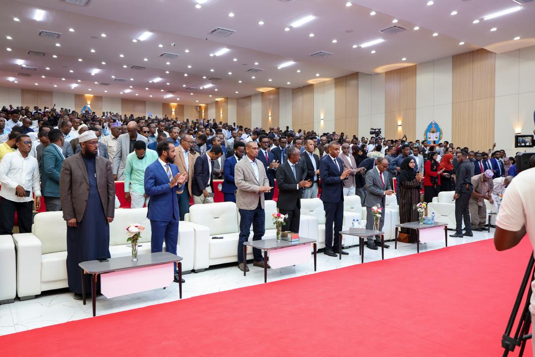 Ra’iisul Wasaaraha Xukuumadda Jamhuuriyadda Federaalka Soomaaliya Mudane Xamsa Cabdi Barre, ayaa Caawa ka qeyb galay munaasabad xarigga looga jarayey Masraxa Prof. Shariif Saalax Maxamed Cali, ee Jaamacadda Ummadda Soomaaliyeed.